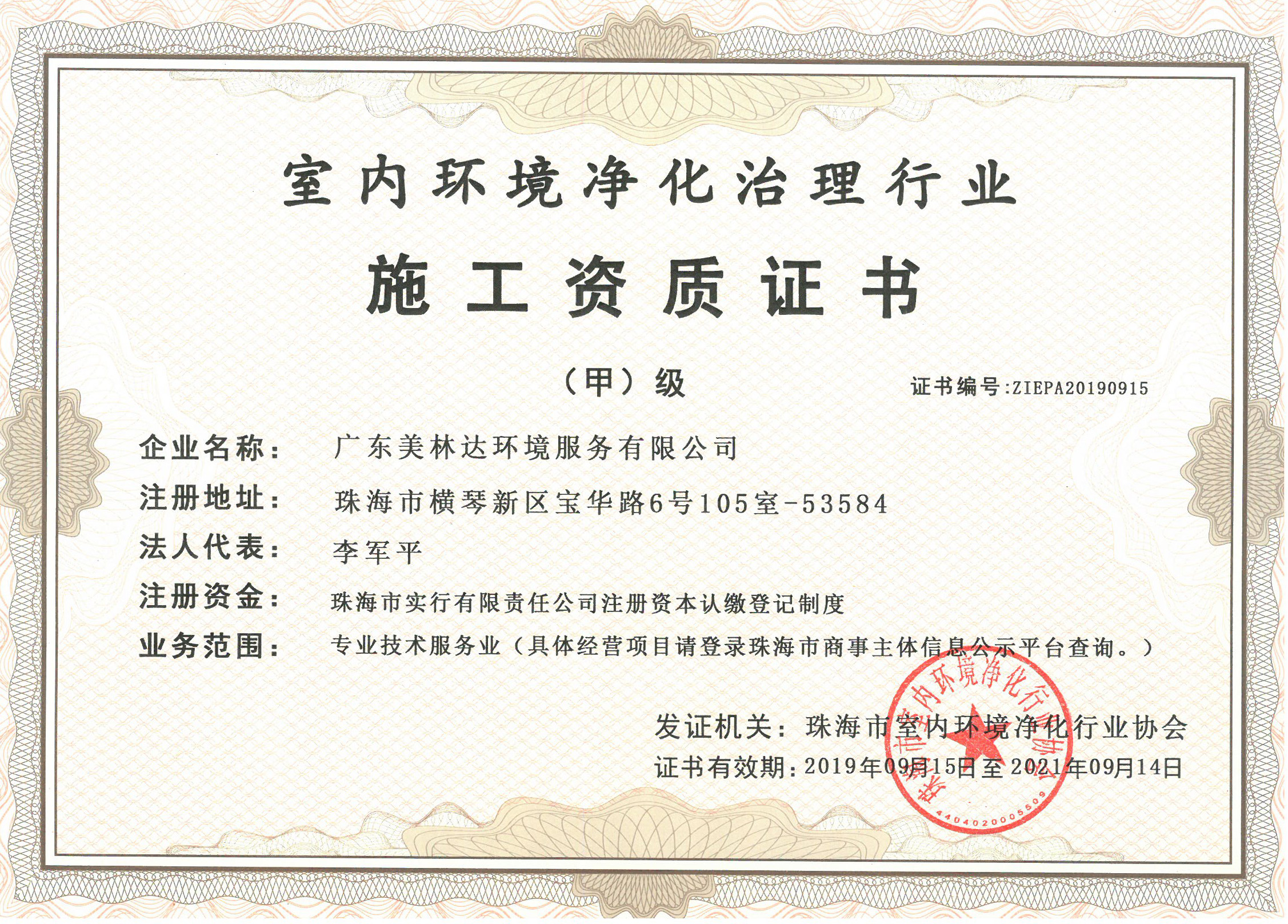 高級室內(nèi)環(huán)境凈化資格認(rèn)證